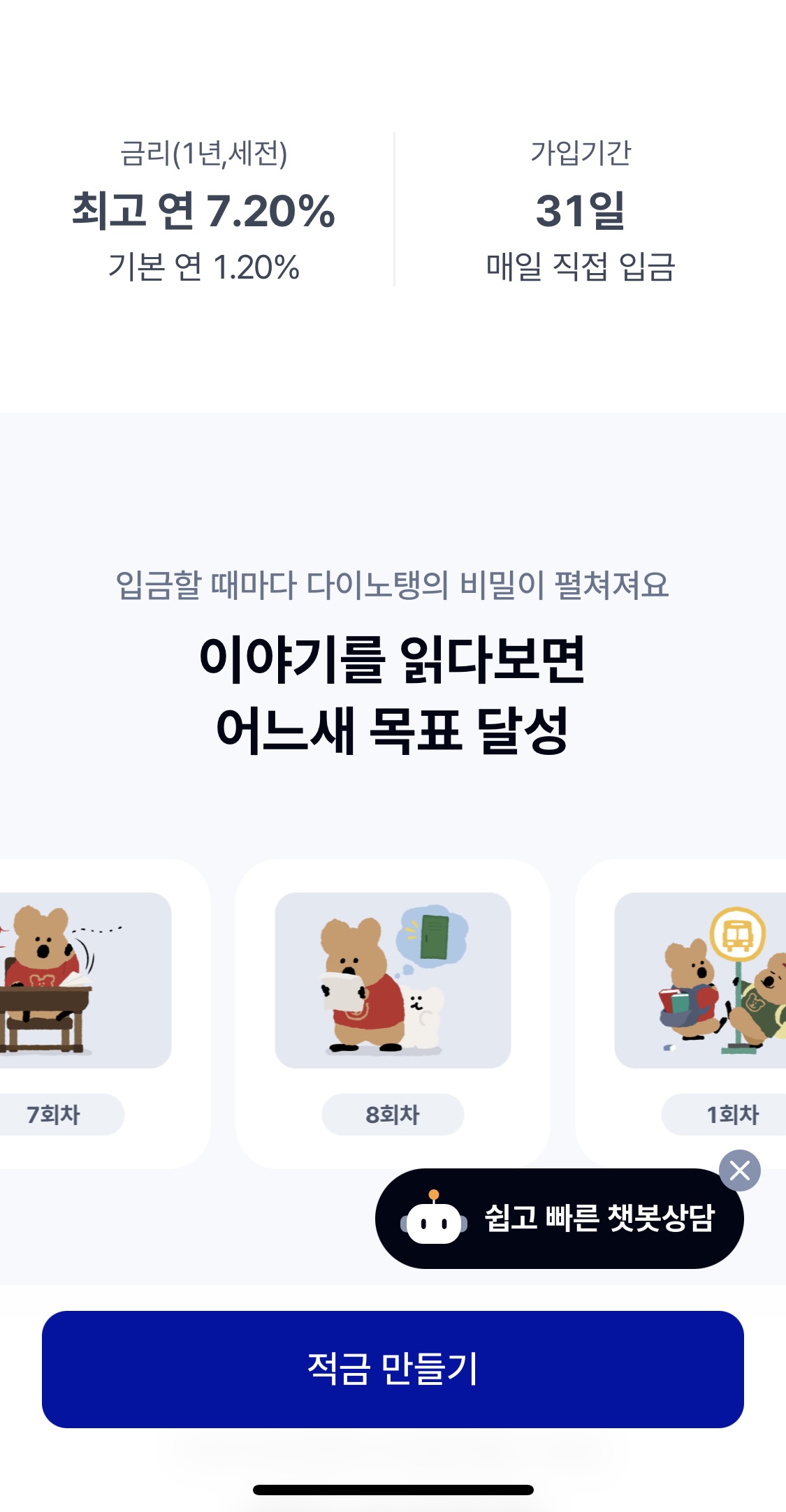 매일 금리를 확인하고 입금하는 재미도 있고, 습관 형성에도 도움이 되는 구조죠.